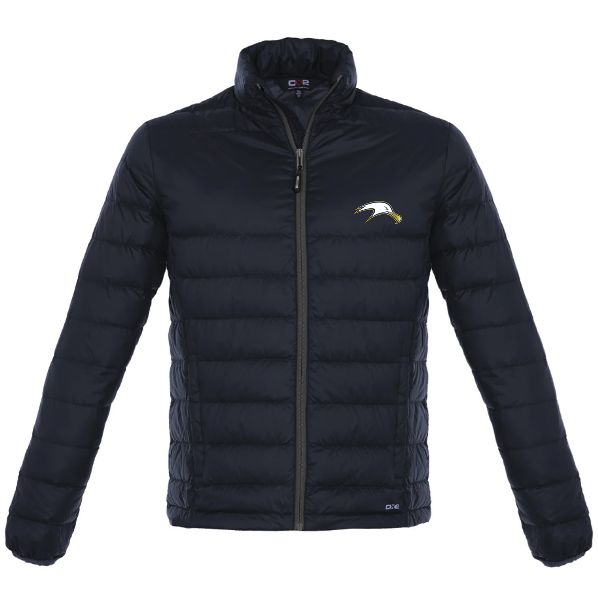 Fermeture à glissière YKK inversée contrastée sur le devant avec tirette logotée.